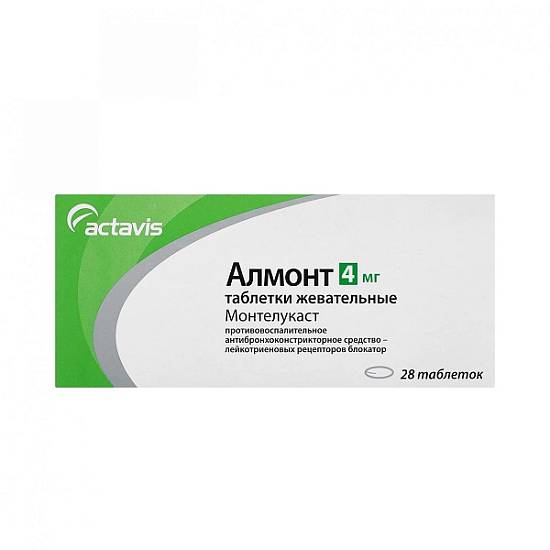 - Действующее вещество: монтелукаст натрия 10,4 мг, эквивалентный монтелукасту 10,0 мг;
